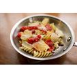 6) Place tomatoes on pasta in pan.