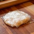 6) Scrape the dough out onto plastic wrap and use the plastic wrap to shape a ball. Do not use your bare fingers on the dough.