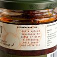 ingredients: sunflower oil, rehydrated paprika and cayenne peppers (23%), raisins, dried apricots (13%), capers, garlic, balsamic vinegar of Modena (cooked grape must, wine vinegar), salt, mixed spices, rice flour, rose petals, ras el hanout (ginger, turmeric, cumin, cardamom, clove, cinnamon, nutmeg), acidity regulator: citric acid