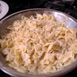 Sometimes a simple creamy pasta on the shapely Bowtie pasta is all you need. Like getting dressed up without having to go out.Directions:1. Cook the pasta for the time reccomeneded.2. While the pasta is cooking melt the butter with the garlic in a large frying pan over medium heat for about 1 minute.3. Add the cream and the goat cheese in pieces and stir together. 4. Add the parmigiano-reggiano and stir until all melted and melded together.5. Remove from the heat and salt and pepper to taste6. Drain and add pasta to pan and gently turn to coat the pasta.