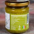 This pesto from Brontedolci in Sicily is, as you may have guessed, the main ingredient is Sicilian pistachios (55%), along with sunflower oil, salt, and pepper. No Basil. Yet, if we think of pesto as mortar & pestle, then this is a savory pistachio pesto.
