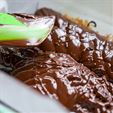 #7: Pour the mixture over the Feuilletine Flakes and level. Sprinkle evenly with Caramelized Cocoa Nibs and chill in the reefer for a couple of hours.