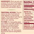 This is a delicious, Spanish-influenced, spicy dry chorizo-like salame. Each is about 10 inches long, and tied in a loop. They are brick-red in color, with a touch of heat and smokiness from Spanish smoked pimenton.