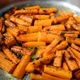 1. Peel the carrots and cut them in two sticks about 2 inches long and a quarter inch wide2. Heat the butter in a large skillet or sauté pan3. Sauté the carrots over medium heat 1 to 2 minutes until coated4. Season with a little salt and pepper and add the water with miso5. Reduce the liquid until the carrots are glazed6. Sprinkle the sugar at the end off the heat over the carrots