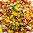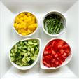 4. Dice tomatoes, cucumbers, bell pepper, and place in a large mixing bowl
